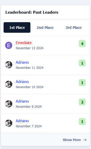 Hiển thị thành viên nào giành được nhiều danh tiếng hoặc lượt thích nhất trong vài ngày qua.