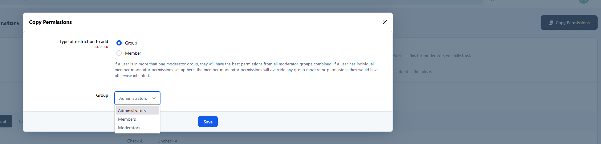 This application will help you speed up the task of adding moderators to IPS4 by duplicating permissions quickly and easily.