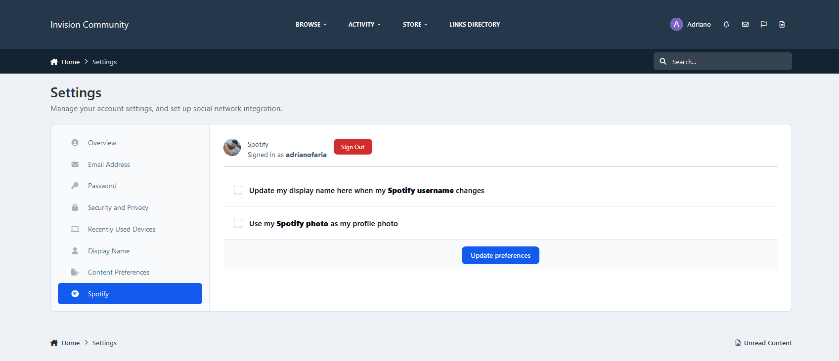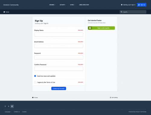 This resource will connect the Spotify account to the IPS4 account. It will allow you to Sign up and Sign in using the Spotify account, as well as to synchronize the user name and/or profile photo.