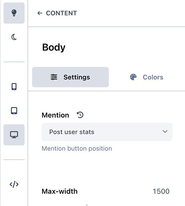 Để thiết lập ứng dụng, hãy vào Trình chỉnh sửa chủ đề > Global > Content > Body > Mention.