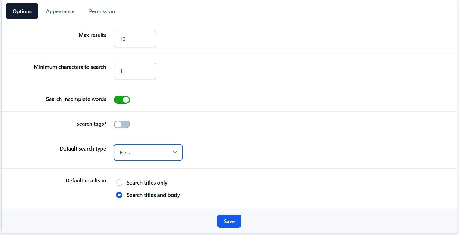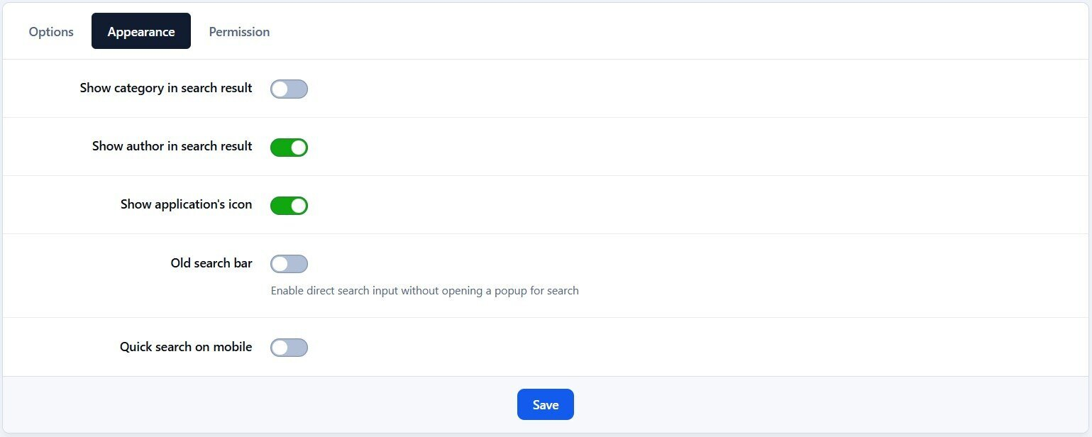 Đặt loại tìm kiếm mặc định cho tất cả các trang