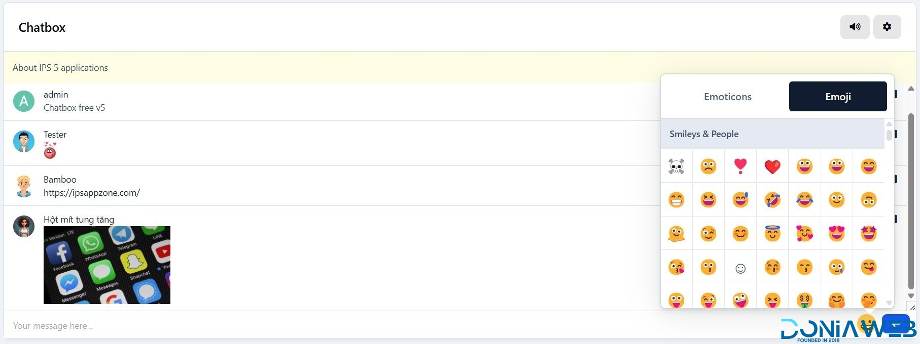 Hỗ trợ biểu tượng cảm xúc, URL, Hình ảnh (GIF, PNG, JPG)