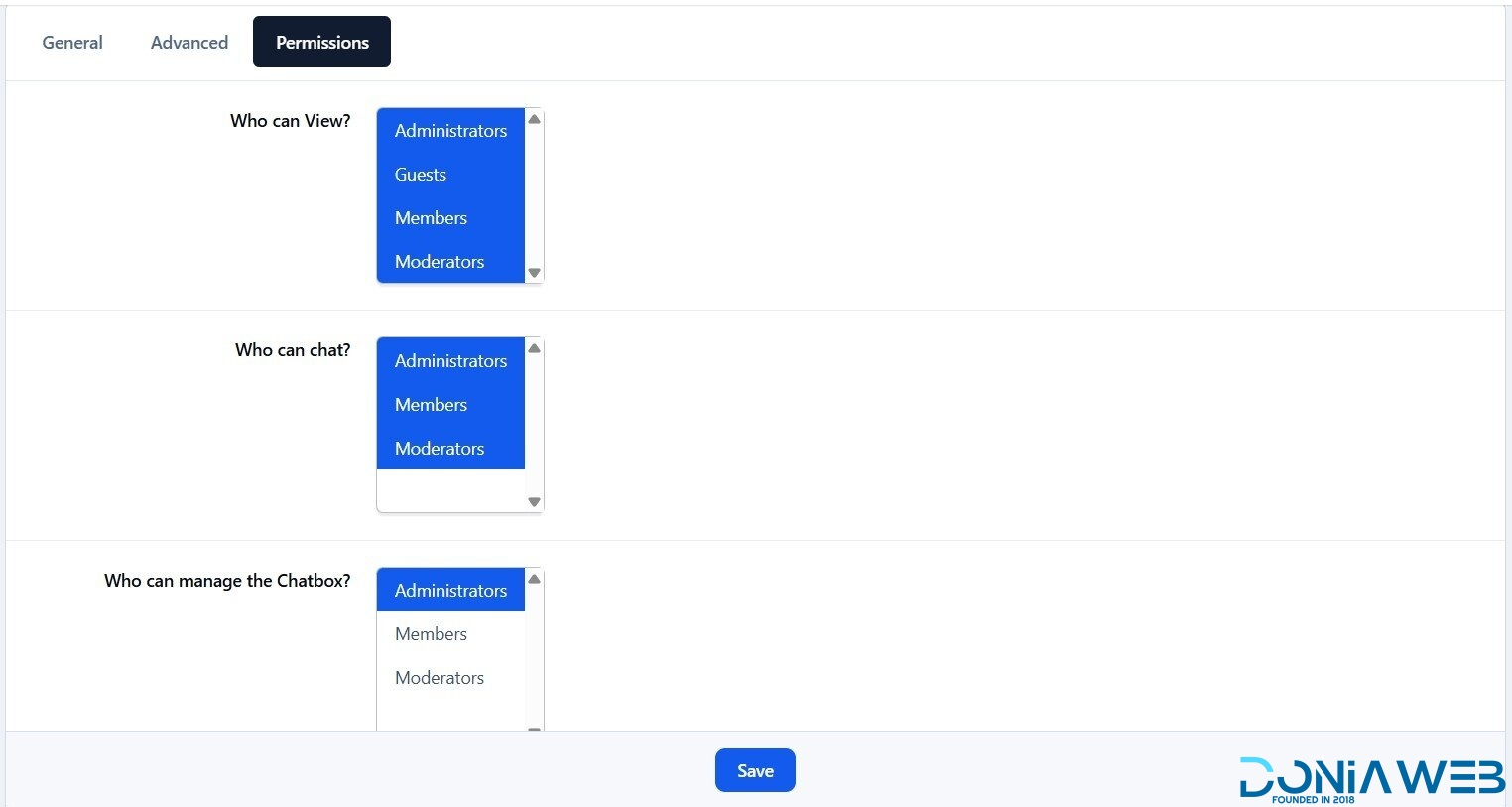 Permissions for viewing, chatting & management.
