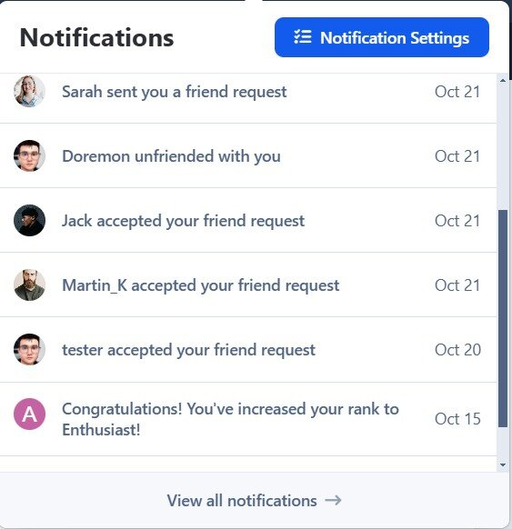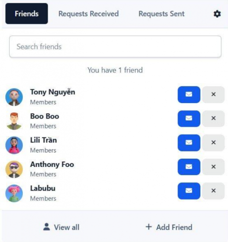 Người dùng có thể gửi yêu cầu kết bạn để kết nối với người khác.Thông báo: