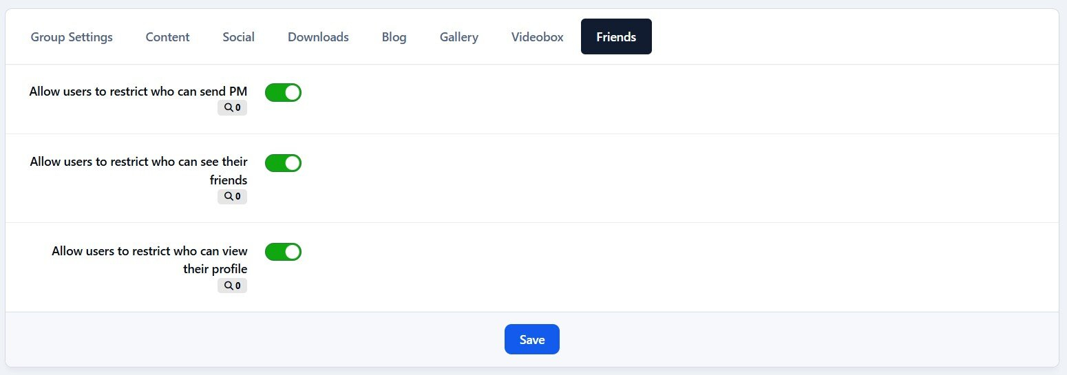 Người dùng có thể kiểm soát quyền riêng tư của mình bằng các tùy chọn để thiết lập: