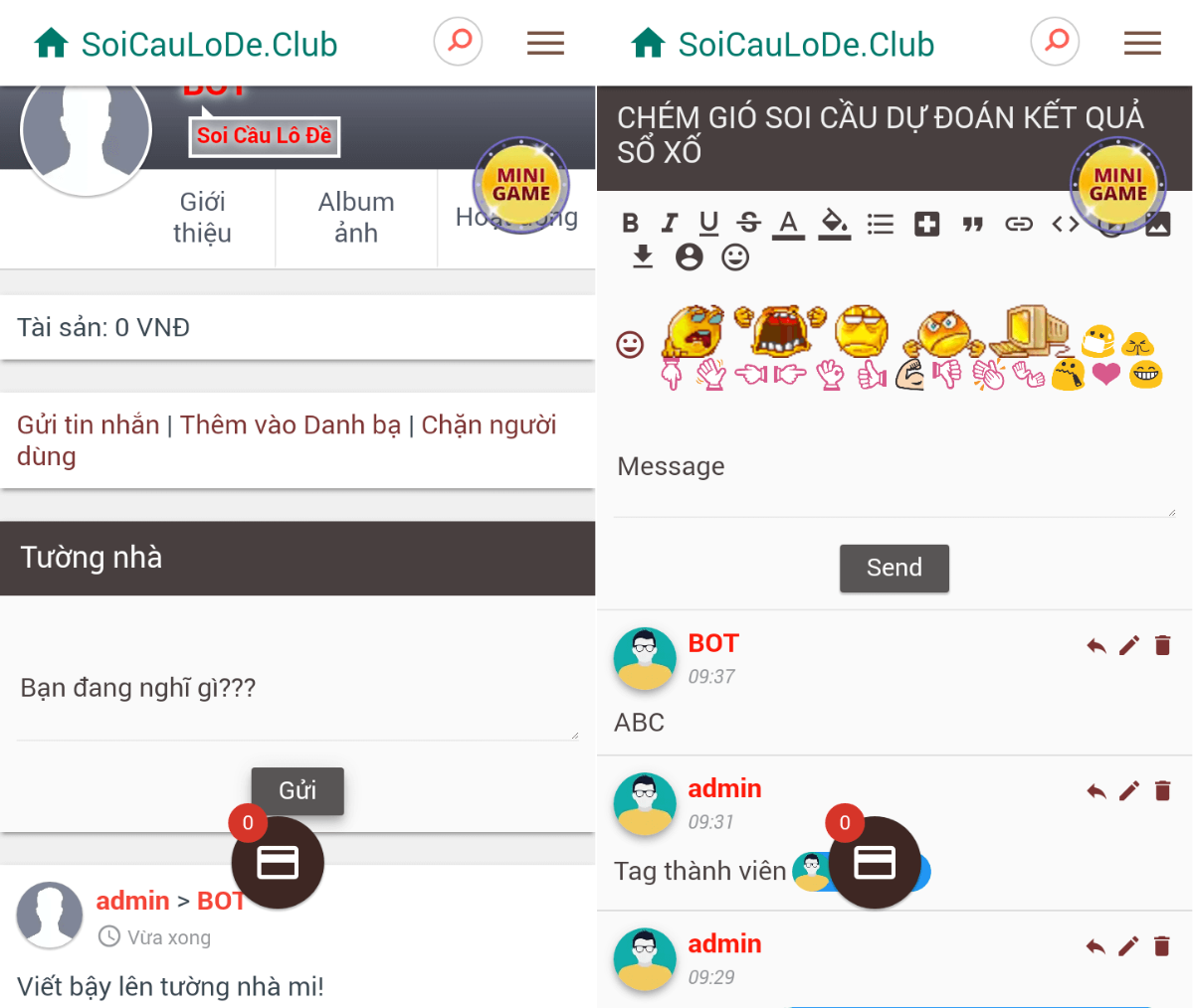 Tính năng Mod từ JohnCMS 7.1.0 Sử dụng giao diện material Mod và tối ưu hóa tính năng cần thiết cho diễn đàn Chatbox, tin nhắn, thông báo autoload Trang cá nhân được thiết kế đẹp có thêm ảnh bìa Upload ảnh lên imgur Thêm một số bbcode play nhạc, video... Thêm smileys mới Mod reaction trong bài viết Thêm mini game tài xỉu Vân vân và mây mây ... Ảnh demo Hướng dẫn Upload code lên giải nén Chạy /install để cài đặt Bản quyền Code By MrT98  ̄﹃ ̄ Download JohnCMS-7.1.0-PhieuBac - 2023-05-31T002345.925.zip