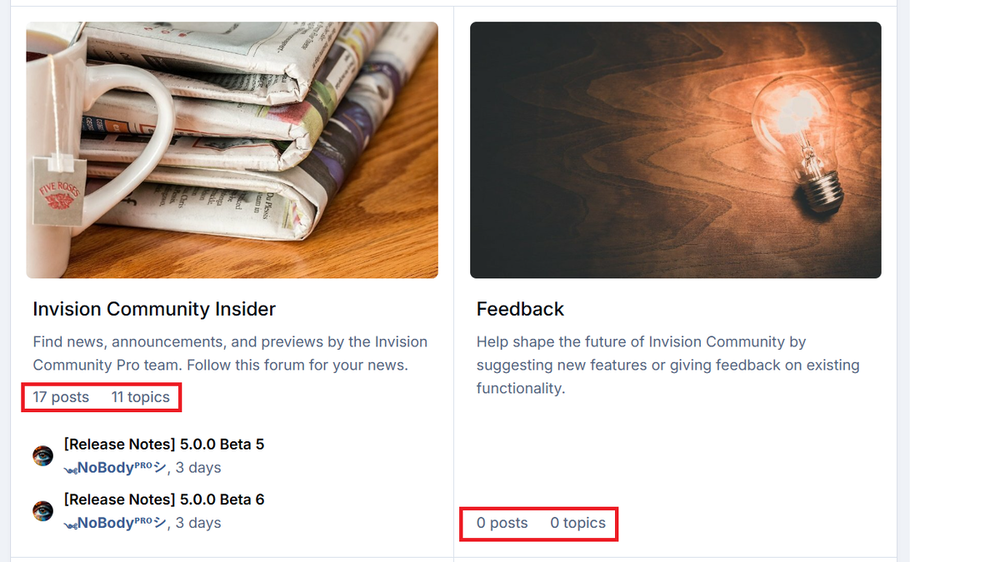 Đi đến ACP > Tùy chỉnh > Chủ đề > Thiết kế chủ đề: Mẫu > Tạo mới: Tên: Total Topics in Forum View Loại: Hook Ứng dụng Hook: Forums Diễn đàn: front/index/forumGridItem Mục tiêu Hook: stats Kiểu Hook: Before the closing tag Nội dung: Code <li> {{$countall = $countsub + $forum->topics;}} {number="$countall" format="short"} {lang="topics" pluralize="$countall" format="short"}</li> Lưu lại và xem thành quả.